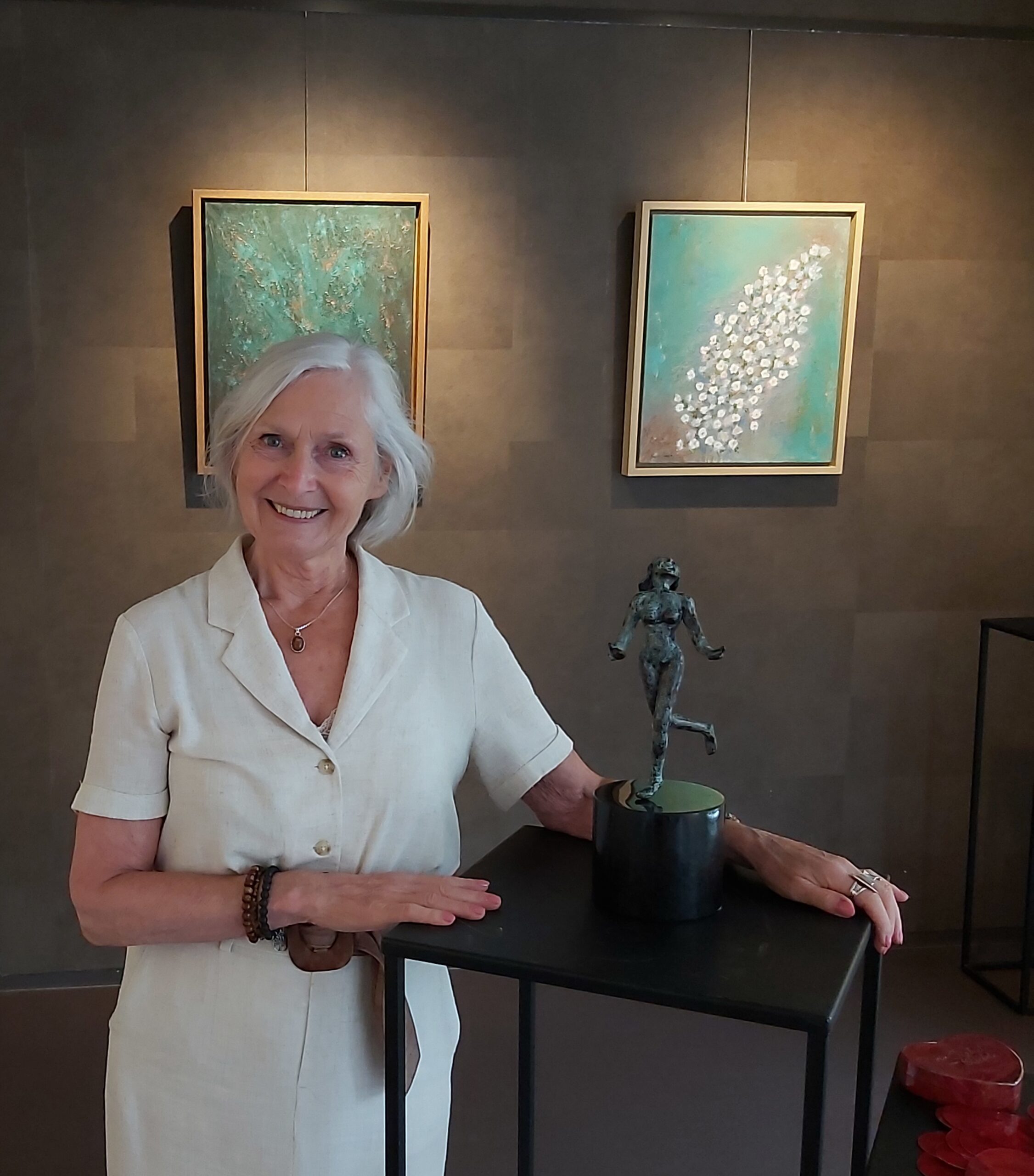 Jacqueline Beukers – Keramiek en Schilderijen. Jacqueline woont in Egmond-Binnen. Als kind was ze al heel creatief met knutselen handwerken spirografie sieraden hout en fantasiepoppen maken. Keramiek is haar grootste hobby geworden het liefste werkt ze elke dag met klei. Ze heeft lessen gevolgd in Gouda Alkmaar Heerhugowaard en Frankrijk met naaktfiguren handvormen en pottenbakken op een draaischijf. Ook maakt ze haar eigen glazuren de mooie kleuren van het glazuren en Raku stoken zijn altijd verassend. Jacqueline maakt onder andere veel dier- en abstracte mensfiguren vazen en urnen. De inspiratie komt tevoorschijn in haar dromen. Meer info over Jacqueline https://jacqiebeukers.exto.nl/ Email: jacqie_beukers@hotmail.com